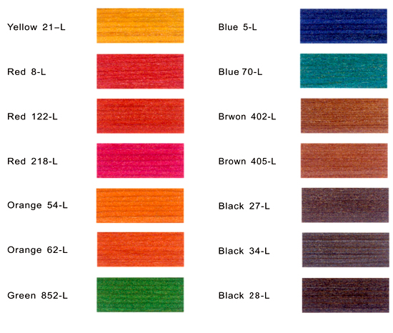 液體金屬絡(luò)合染料 木器漆應(yīng)用 木器著色處理工藝 1)木器漆制備:三威液體染料1-10%,溶劑30%-40%,樹(shù)脂40-60%,助劑0-5% 2)下涂:使用底漆處理,其中已含有著色劑 3)磨掉纖毛:下涂油漆干后,使用砂紙,使木器表面基本平整 4)中涂:再刷底漆,增加油漆厚度 5)研磨:中涂油漆干后,使用砂紙(#200-400)研磨表面,使木器表面平滑 6)上涂:涂裝之最終工程,選用適宜之透明面漆,粘度稍低于中涂底漆 7)干燥:將著色處理后的木器置于通風(fēng)、陰干處,自然干燥